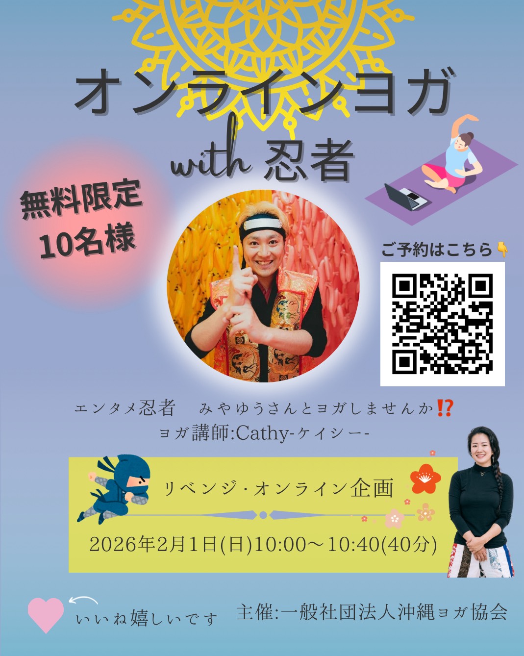持ち物:動きやすい服装(ヨガマットは会場にて準備あり)